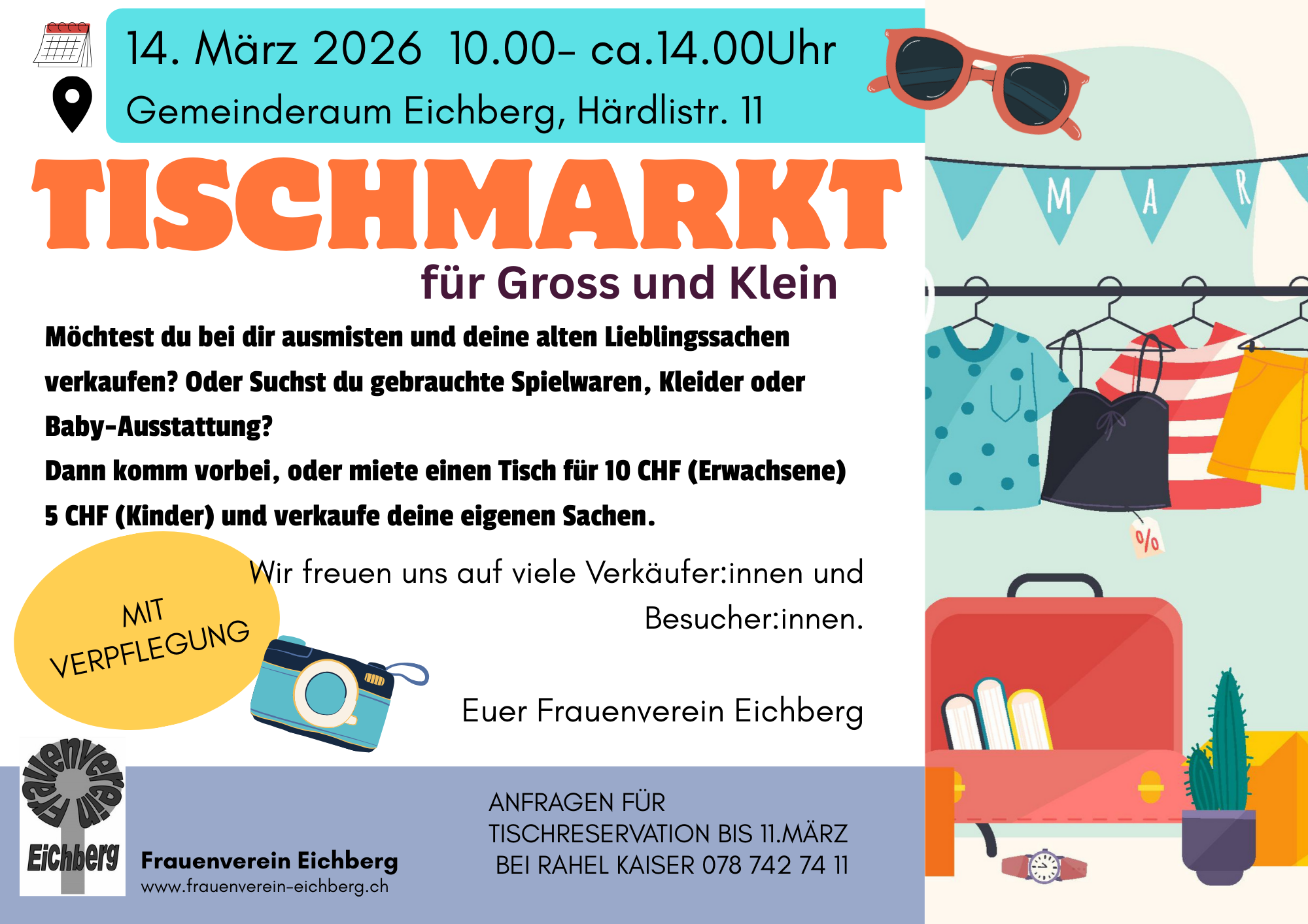 Flyer Januar: Familienlotto März: Tischmarkt April: fröhliches Ostereier suchen April: SeniorenZmittag Ü70 im Frühling Änderungen bleiben vorbehalten!
